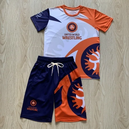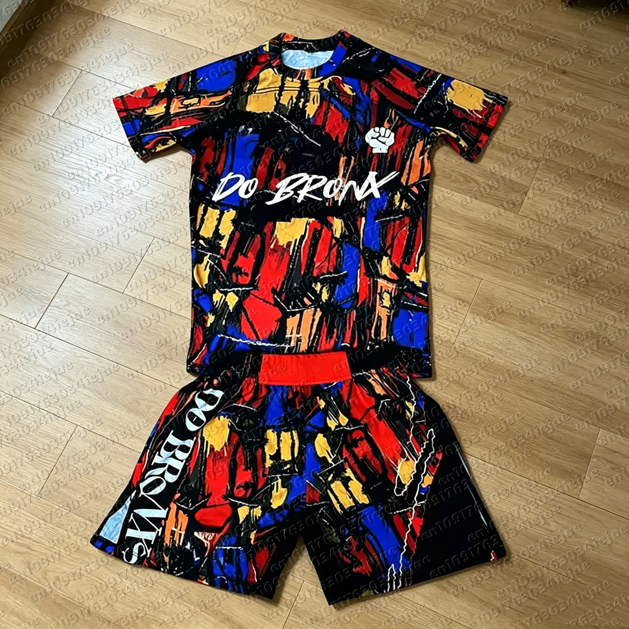 26 Nieuwe Worstelsportset Grafische T-shirts en shorts met korte mouwen Sneldrogend MMA Training Combat Volwassenen Kinderpak