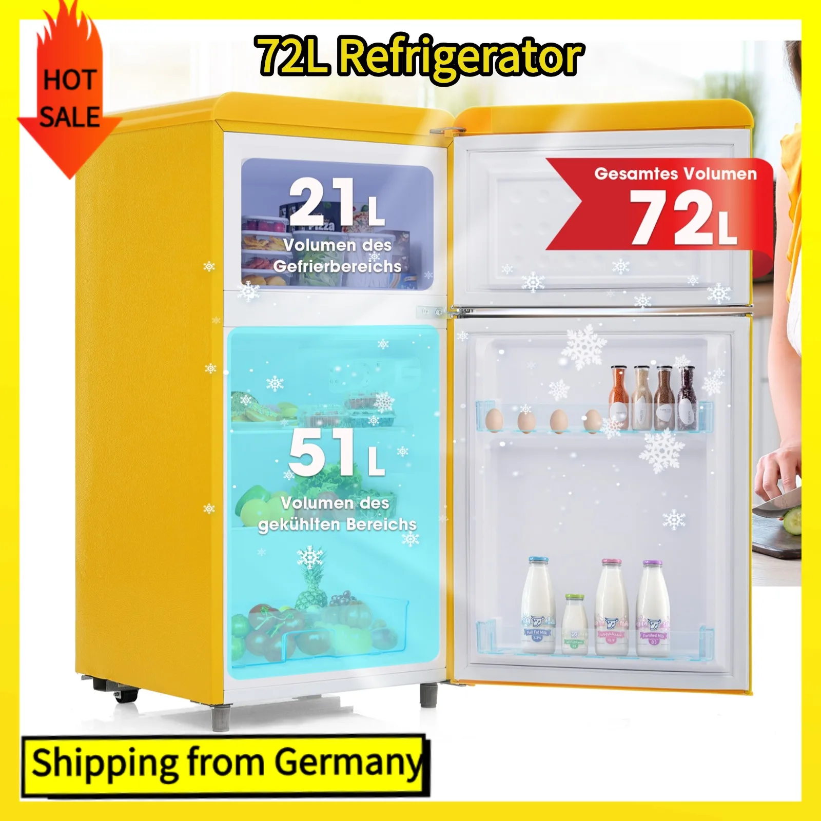 Lodówka Comanlai 72L Retro, kombinacja lodówka-mrozniarka, dwudrzwiowa z oświetleniem LED, pojemność zamrażarki 21 L, [klasa energetyczna E]