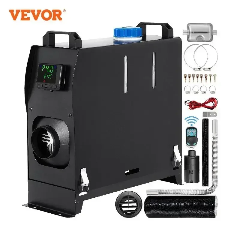 Nagrzewnica powietrza VEVOR 8KW z silnikiem wysokoprężnym, ogrzewanie postojowe z silnikiem wysokoprężnym, wszystko w jednym grzejniku samochodowym 12 V, jeden otwór wylotowy, z czarnym wyłącznikiem LCD, szybkie nagrzewanie