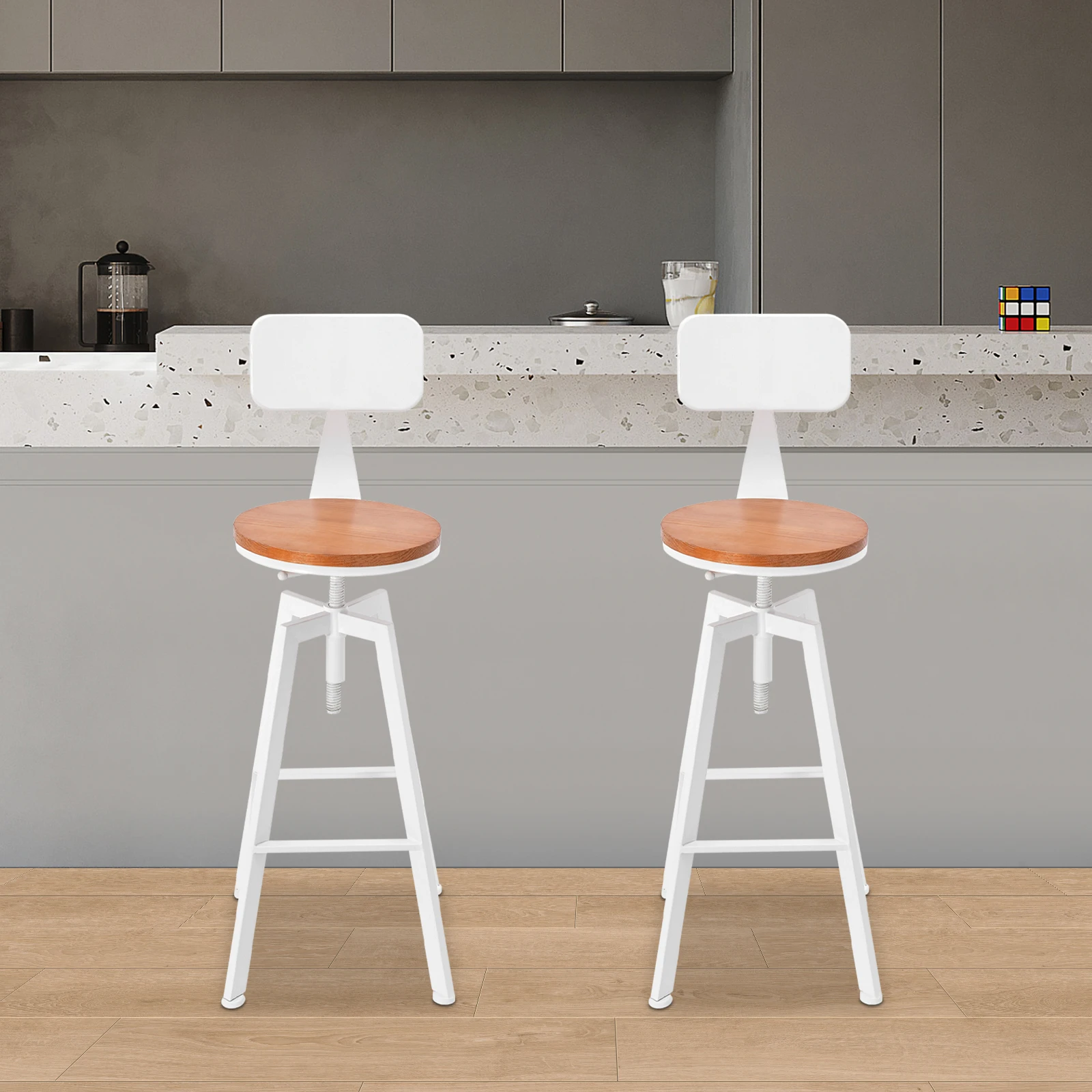 2x Hokery, regulowana wysokość 63-83cm, nowoczesne białe krzesła kuchenne, lite drewno i żelazo, udźwig 125kg, siedzisko 30cm, dekoracja do domu i kawiarni