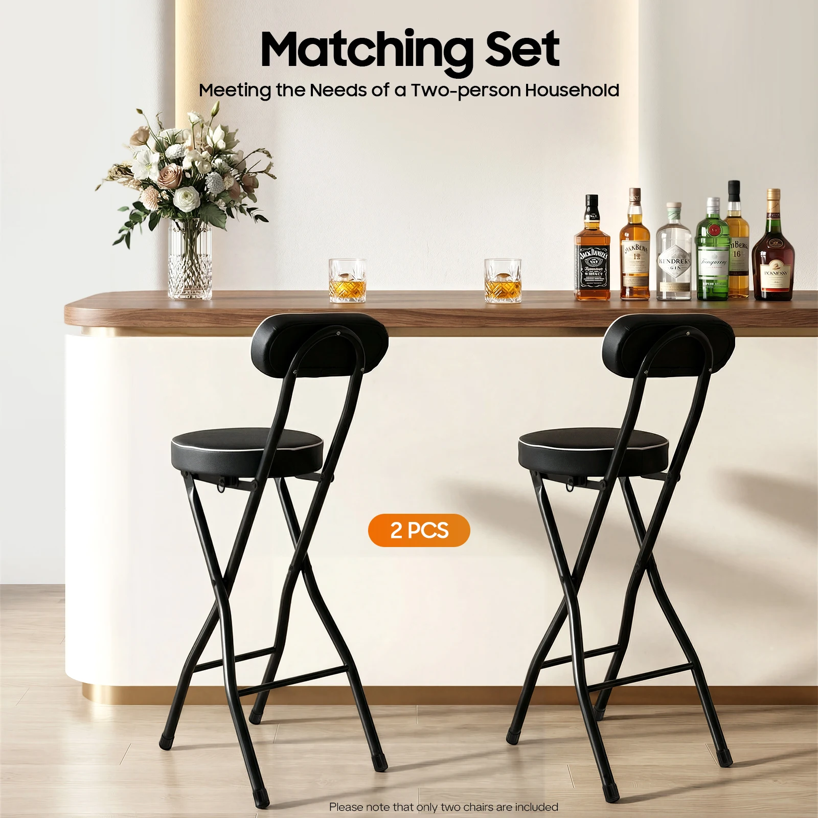 2 szt. Krzesła barowe, przenośne składane stołki z wyściełanym siedziskiem i oparciem, wysokość 65 cm, stołki do użytku na zewnątrz i wewnątrz, na kemping, grilla, do garażu