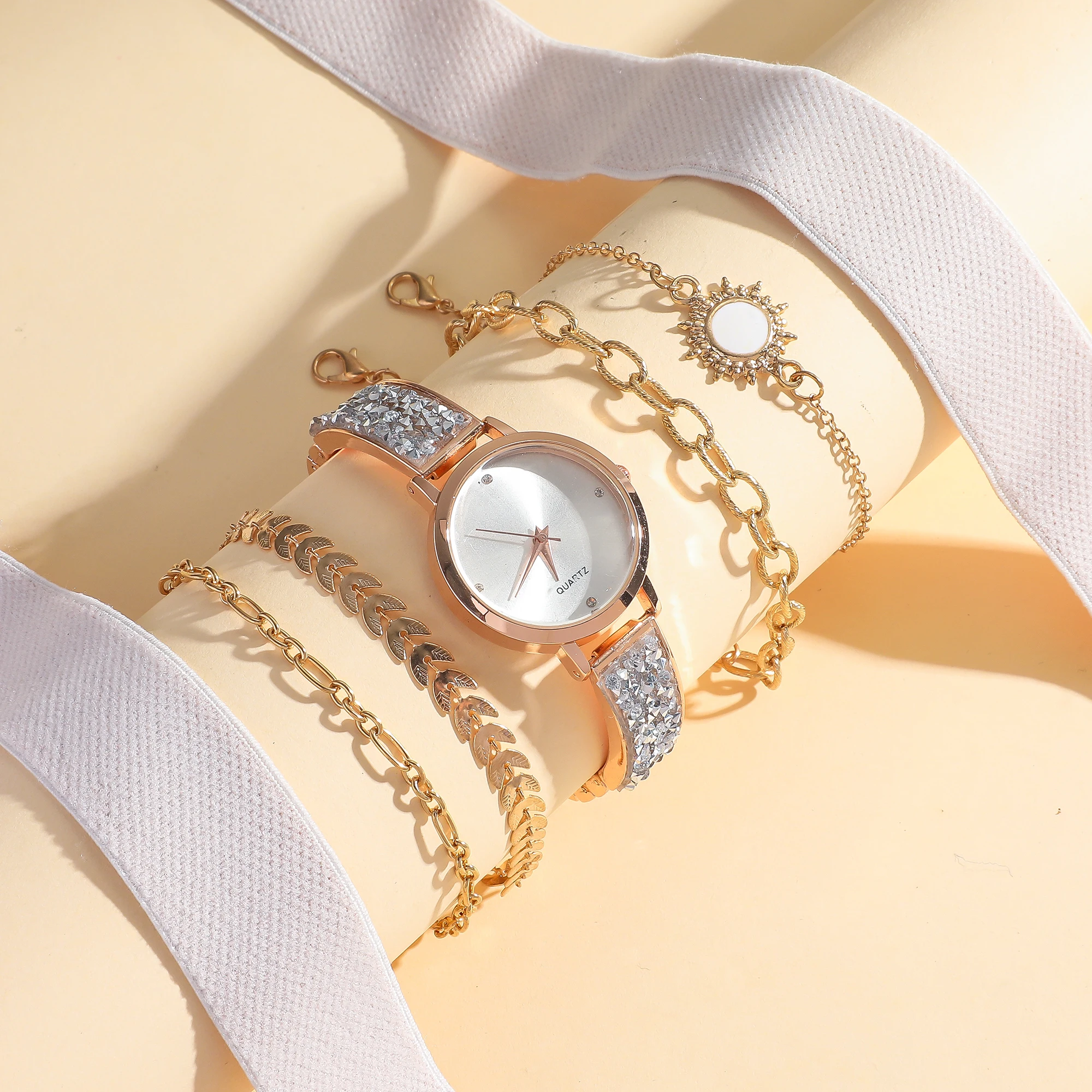 5 sztuk/zestaw Modny, elegancki zestaw zegarków kwarcowych dla kobiet z motywem gwieździstego nieba i bransoletkami; idealny na prezent urodzinowy