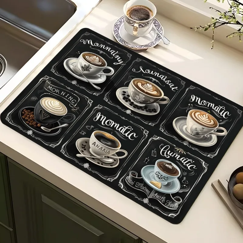 Vintage Coffee Shop Printed Absorbent Drain Mat Super Antiskid Quick Dry Modern Kitchen Counter Coffee Dish Drying Pad:Vintage Coffee Shop Printed Absorbent Drain Mat Super Antiskid Quick Dry Modern Kitchen Counter Coffee Dish Drying Pad