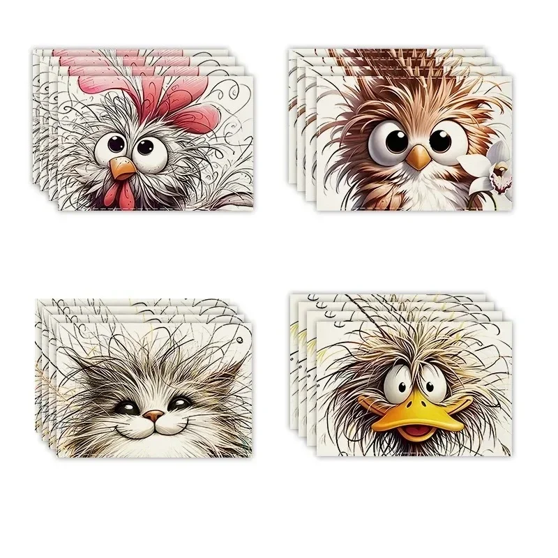 4/6/8 szt. Nowoczesne, abstrakcyjne podkładki na stół z lnu z motywem zwierzęcym, antypoślizgowe, prostokątne, nadające się do prania ręcznie, artystyczny design do dekoracji kuchni