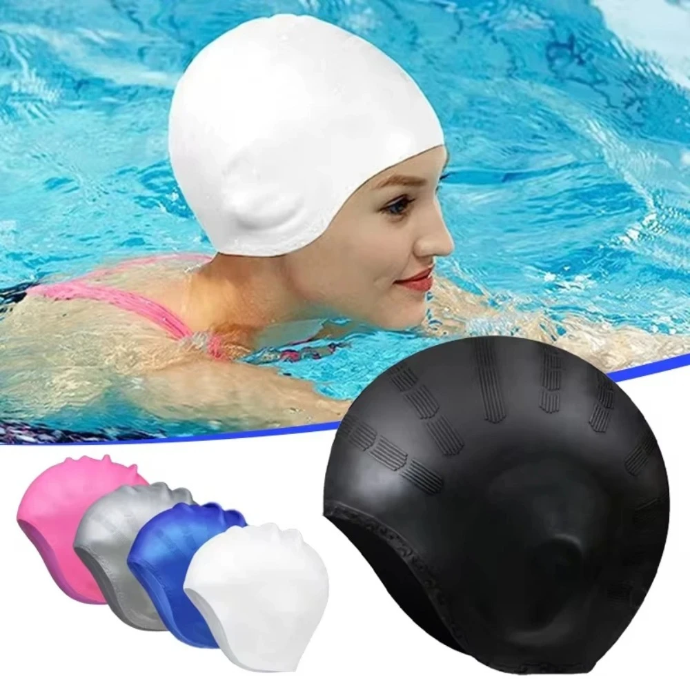 Profesjonalna, wytrzymała silikonowa czapka pływacka z kieszeniami na uszy dla dorosłych i nastolatków, chroni długie włosy i zapewnia wysoką elastyczność.