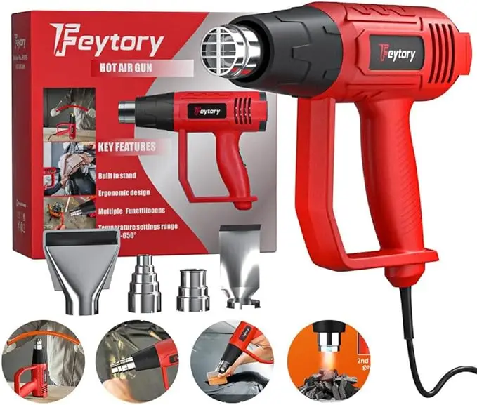 Profesjonalna opalarka o mocy 2000 W, z regulacją temperatury 140 ° Fto 1112 ° Z 4 dyszami, do spawania, pakowania termokurczliwego, usuwania farby DIY