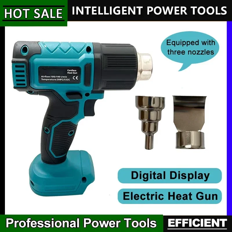 Yofidra 50-500 ℃ Pistolet na gorące powietrze bezprzewodowy, 6 biegów regulacji prędkości nawiewu, wyświetlacz LED temperatury, pistolet na gorące powietrze przemysłowy/domowy, na akumulator Makita, z pinem.