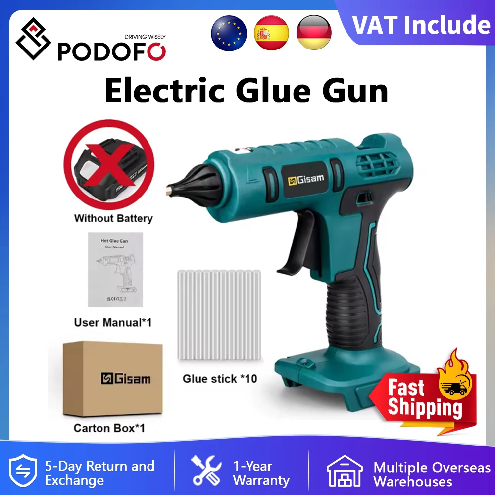 Pistolet do kleju na gorąco Podofo, bezprzewodowy pistolet do kleju na gorąco z patyczkami klejowymi 11 mm, narzędzie do napraw domowych DIY, kompatybilny z akumulatorami Makita 18V