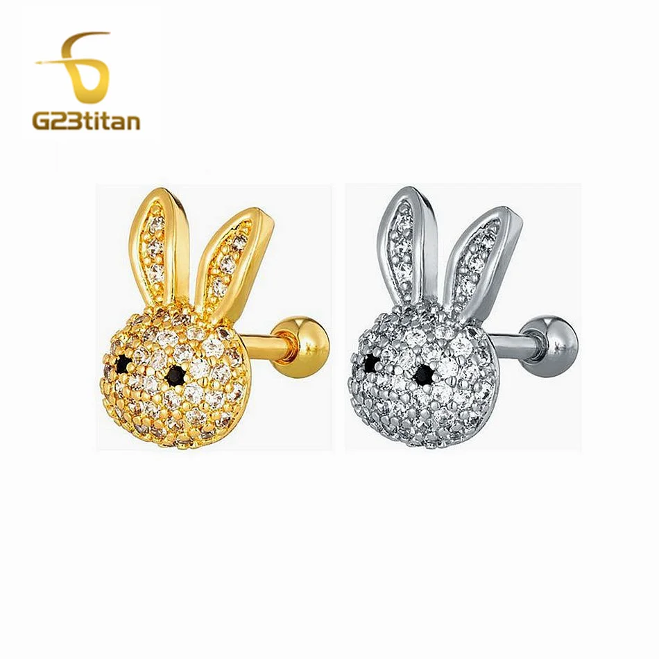 1szt Śliczny kolczyk z chrząstki królika Cyrkonia Zwierzęca spirala Tragus Lobe Piercing 16G G23 Tytanowy kolczyk do nosa Kobiety Mężczyźni Biżuteria do ciała