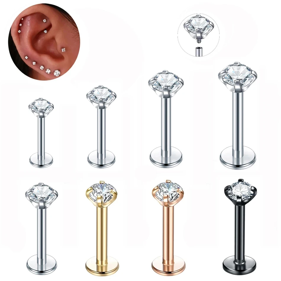 10 sztuk/partia kolczyk ze stali nierdzewnej z cyrkonią i chrząstką do przekłuwania ucha z gwintem wewnętrznym dla kobiet kolczyk do przekłuwania warg 16G