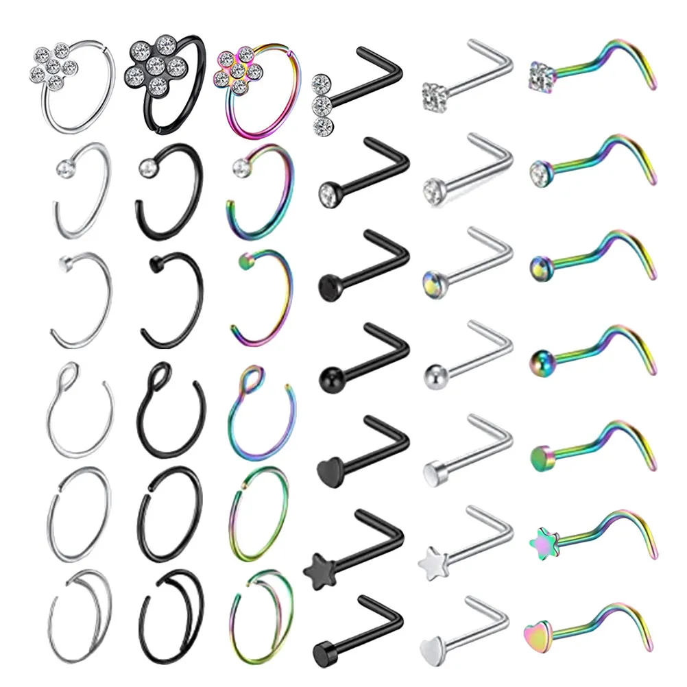 1 Zestaw Modnych Kolczyków do Nosa, Biżuteria z Wysokiej Jakości Stali Nierdzewnej, Błyszczące, Lekkie, Wygodne, Dla Kobiet i Mężczyzn, Modne Kolczyki do Nosa