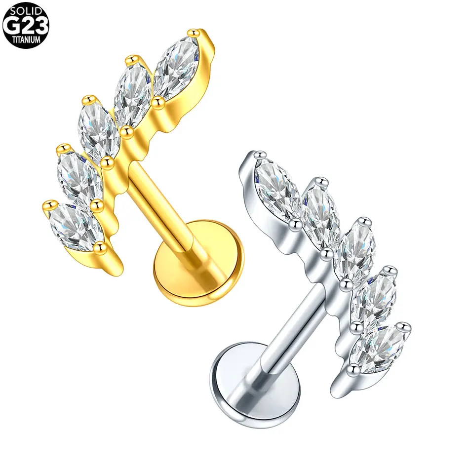 1/5 szt. Tytanowy kolczyk labret z cyrkonią markizą dla kobiet, gwintowany wewnątrz, do chrząstki, łopatki, tragusa, helisy, piercing, biżuteria do ciała
