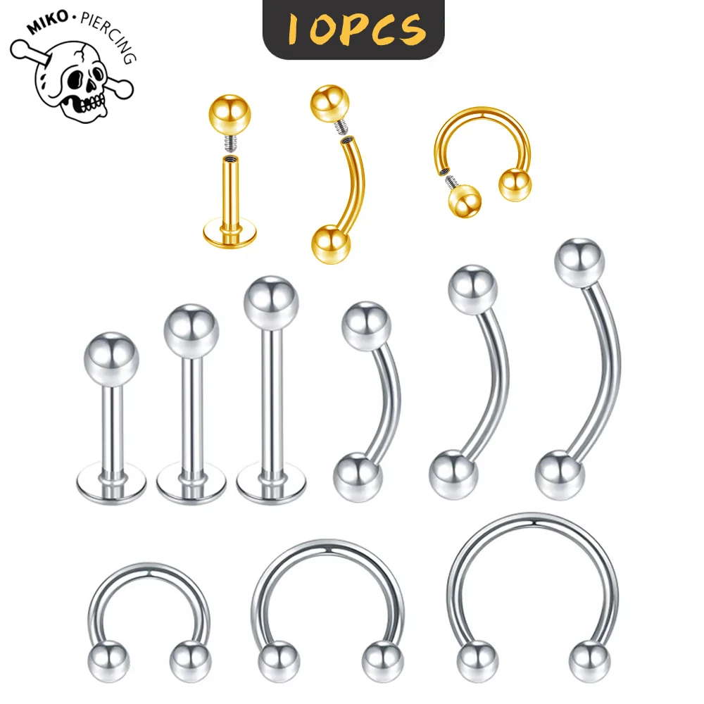 10 szt. Tytanowe kolczyki do brwi z gwintem wewnętrznym ASTM F136, zakrzywione sztangi typu banana, zestaw do piercingu brwi, tragusu, wargi, biżuteria do ciała dla kobiet