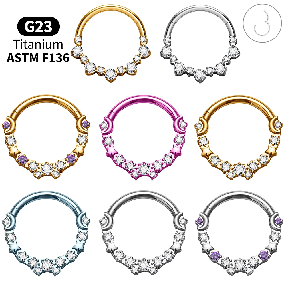 Zestaw tytanowych kolczyków typu clicker do piercingu septum, helix, tragus, chrząstki, daith, conch, rook, labret, kolczyk do nosa, kolczyk do ucha, biżuteria do ciała.
