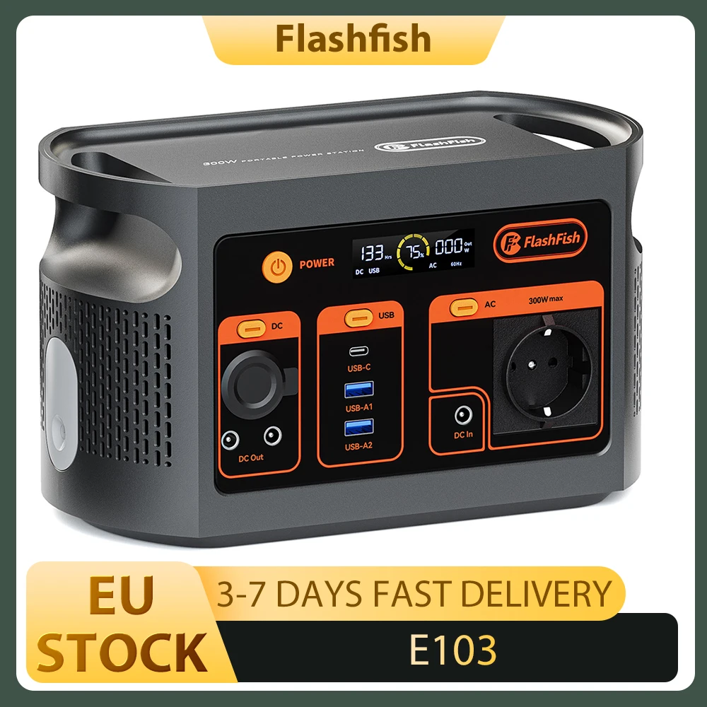 Flashfish E103 300W Przenośna Stacja Zasilania, Bateria LiFePO4 179.2Wh, Inwerter z Czystą Sinusoidą, Generator Solarny z Wieloma Wyjściami