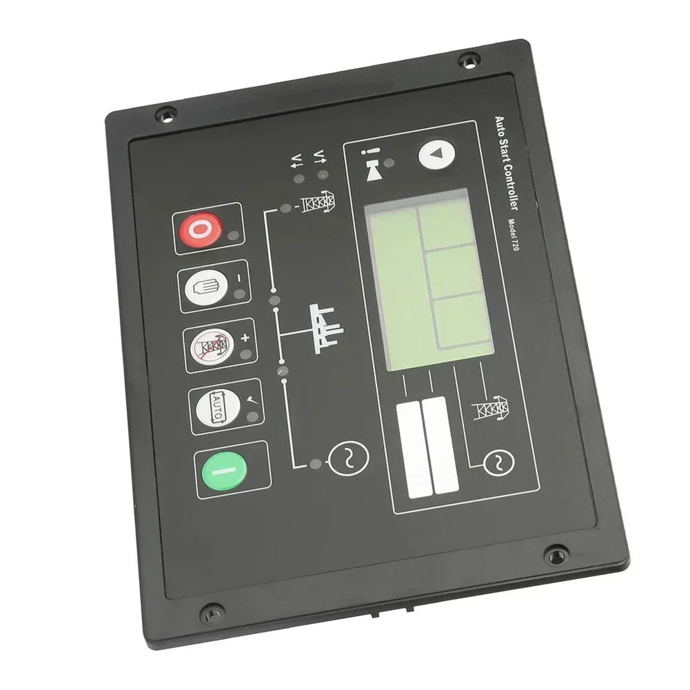 Panel sterowania automatycznym uruchamianiem generatora DSE720 firmy Deep Sea Electronics z zdalnym automatycznym uruchamianiem i zatrzymywaniem oraz lokalnym sterowaniem ręcznym.