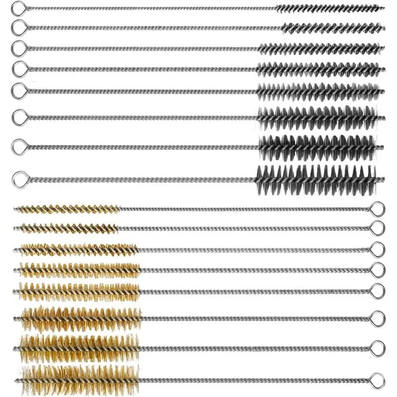 Zestaw szczotek do czyszczenia silników ABFI (16 szt.), mosiężne i ze stali nierdzewnej, 30 cm okrągłe szczotki druciane do głębokiego czyszczenia rur.