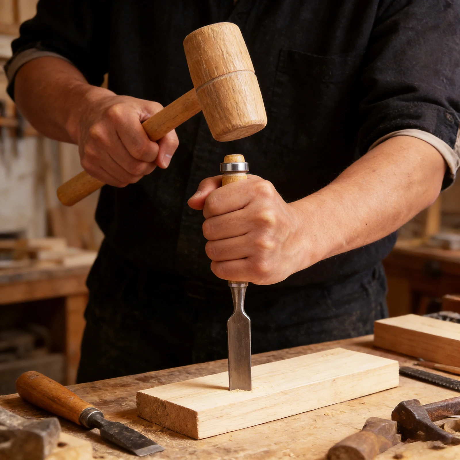 Zestaw 6 szt. półokrągłych dłut ze stali chromowo-wanadowej, narzędzie do obróbki drewna, młotek, kamień do ostrzenia o gradacji 1000, zestaw dłut stolarskich.