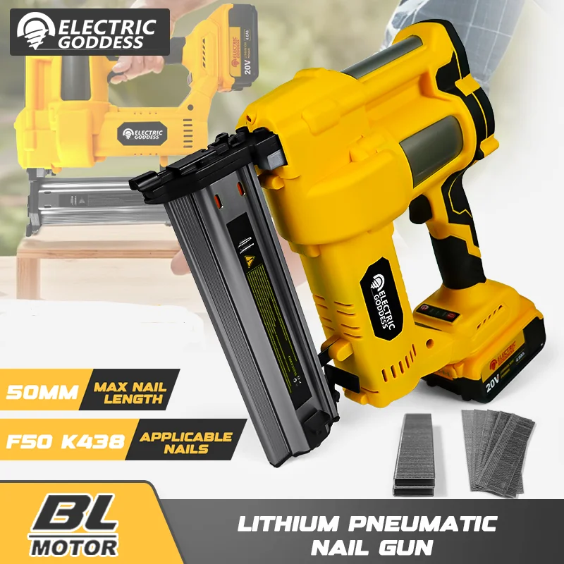 Akumulatorowa, bezszczotkowa gwoździarka do gwoździ typu Brad 0-50MM, do gwoździ prostych/kształt N, do obróbki drewna, kompatybilna z akumulatorami Dewalt 20V.