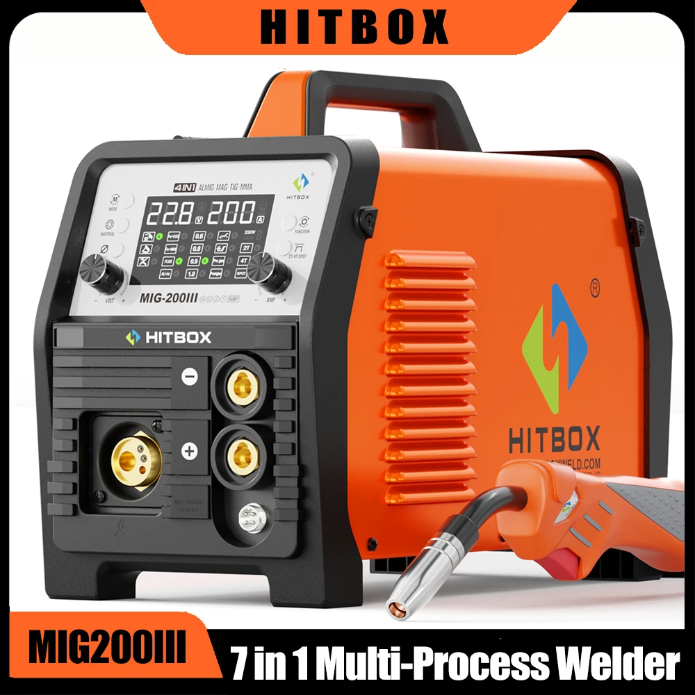 HZXVOGEN HVM270 6 w 1 Spawarka Aluminiowa Tnąca/Gasowa MIG/Gasless MIG/HF TIG/MMA z Cyfrowym Ekranem 2/4T Inwertorowa Spawarka do Stali Nierdzewnej