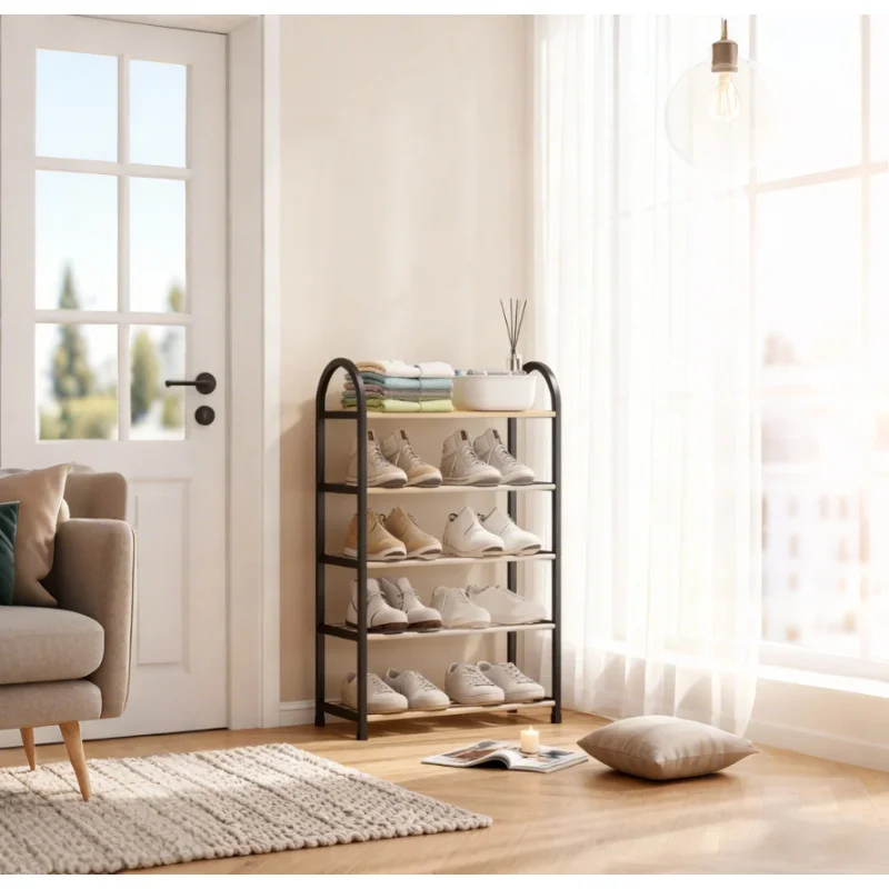 5-poziomowy prosty regał na buty w kształcie trapezu, organizer na obuwie, stojak, oszczędzający miejsce, nowoczesny, składany regał na buty do salonu