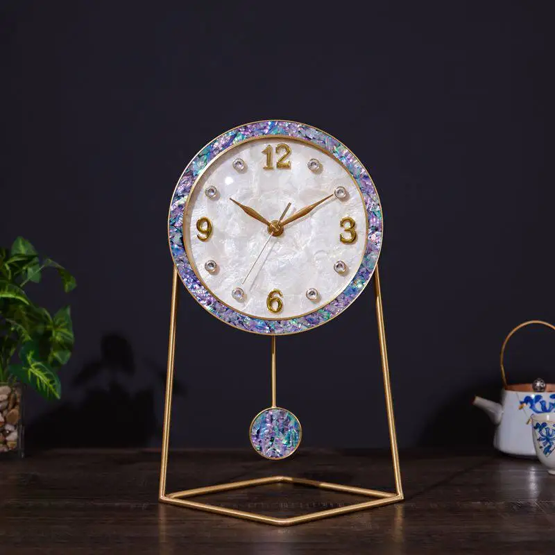 Zegar stołowy z mosiężną obudową, luksusowy dodatek do salonu, precyzyjny zegar z naturalną teksturą, elegancki element wyposażenia domu, zegar do pomiaru czasu.