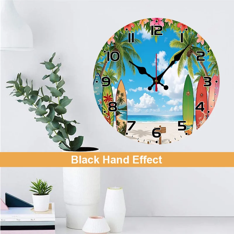 1 szt. Zegar ścienny DIY w stylu hawajskim na motyw plaży - 25 cm okrągły zegar z drewnianym wykończeniem, cichy, bezgłośny, do domu, biura, pokoju, kuchni