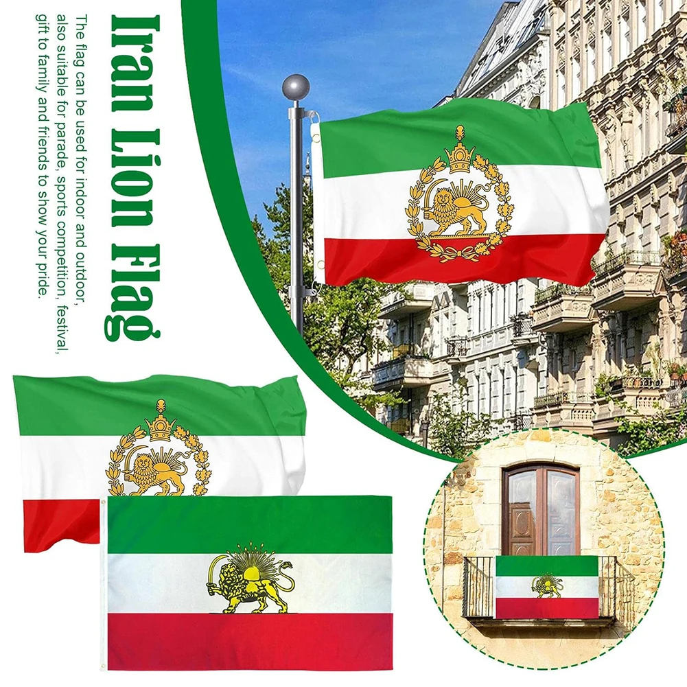 Flaga irańska 3x5 stopy, starożytna, historyczna, z lwem i słońcem, żywe kolory, odporna na blaknięcie, do ogrodów i na patio, do trwałego ekspozycji.