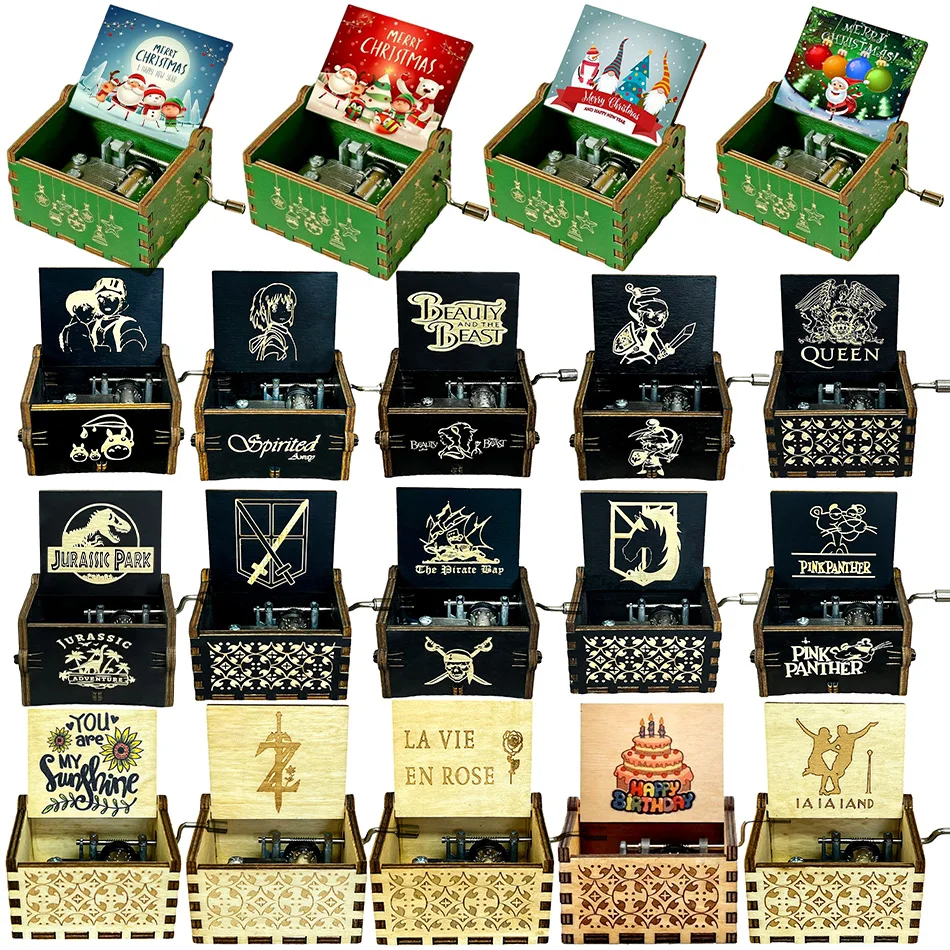 52Styles Pozytywka Świąteczna Drewniana Ręcznie Rzeźbiona w Stylu Antycznym z Klasyczną Muzyką na Prezent Urodzinowy, Dekoracja Rodzinna