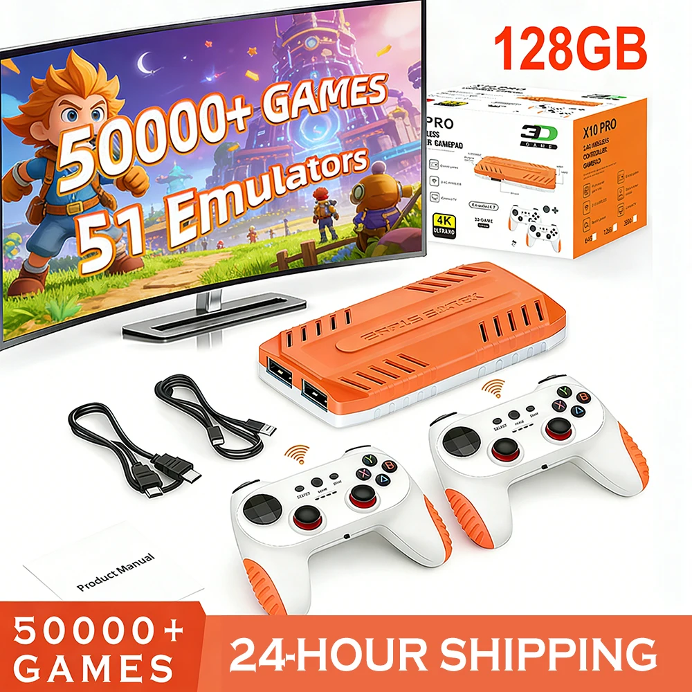 Nowa konsola do gier 2026 128G X10 PRO GameStick 4K, gry 3D, wbudowane 50 tysięcy gier, ponad 40 emulatorów, gry retro, podwójny kontroler 2.4G