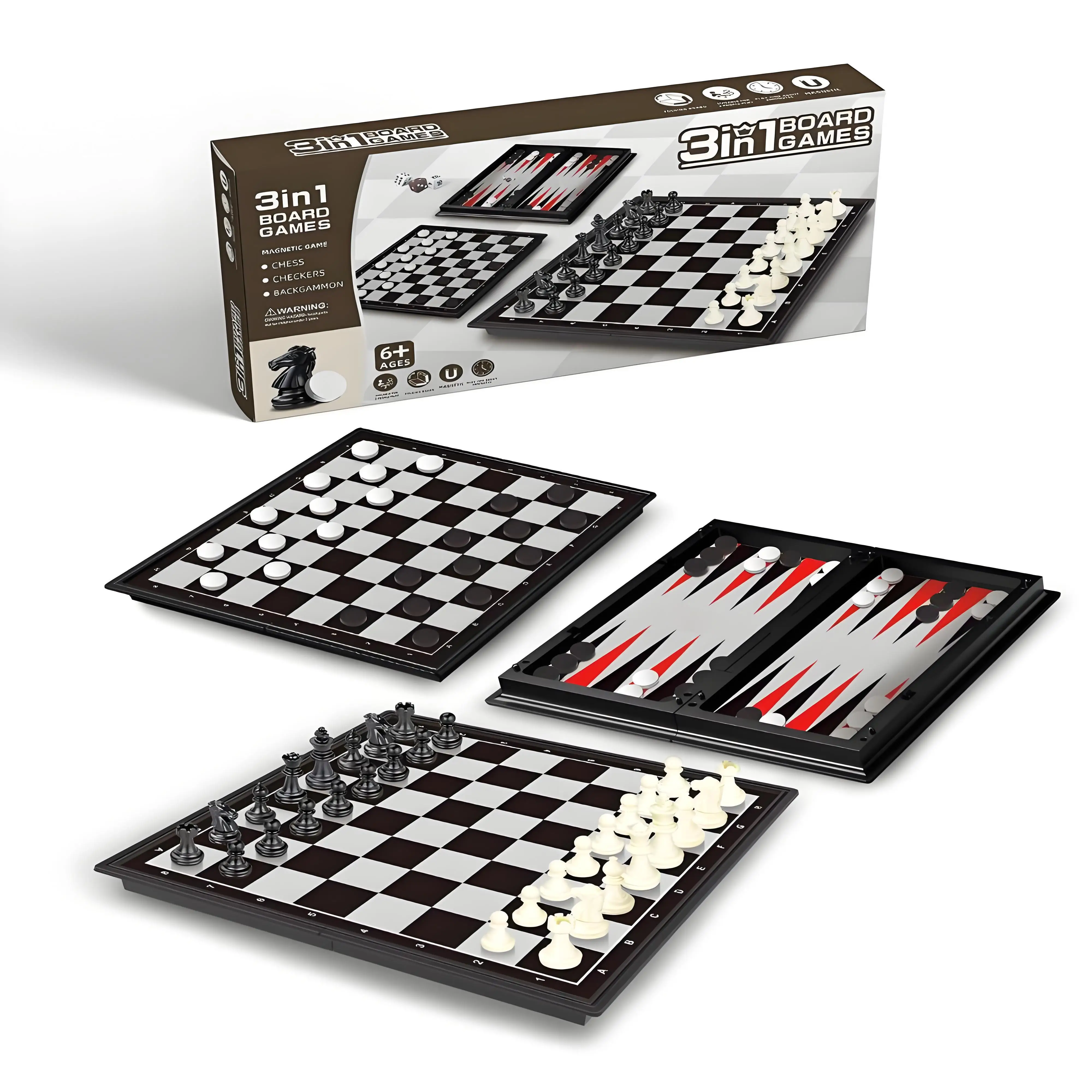 Zestaw szachowy magnetyczny 3 w 1, gra planszowa, gra stołowa, zabawka intelektualna dla dorosłych i dzieci, z pudełkiem do przechowywania, na święta i urodziny