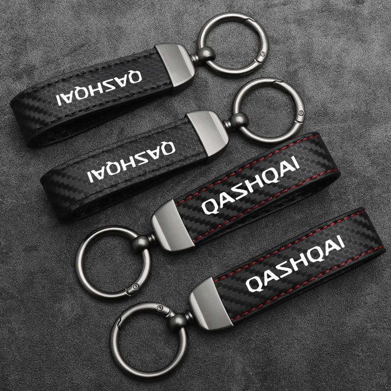 Brelok do kluczy samochodowych Nissan Qashqai J10 J11, skórzany sznurek z włókna węglowego, breloczek do kluczy, klamra w kształcie podkowy, akcesoria samochodowe