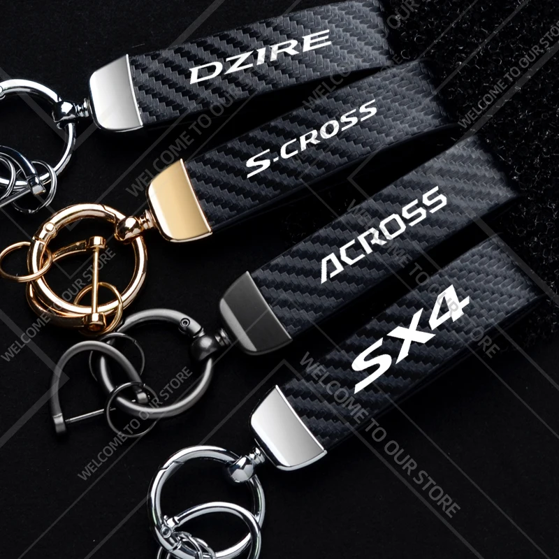 1 SZT. Brelok do kluczy samochodowych z logo Across S-cross SX4 Dzire, ozdobny element, metalowy brelok z włókna węglowego i skóry, akcesoria do kluczy