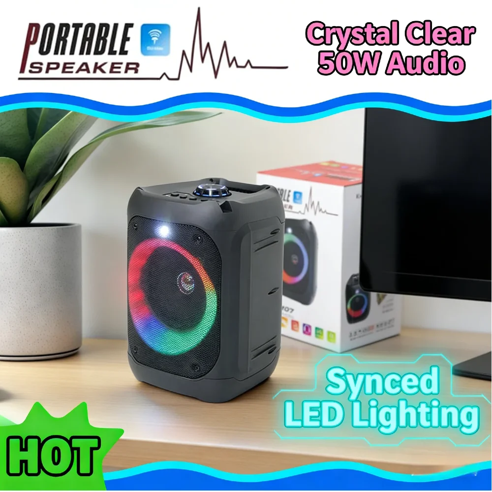 Bezprzewodowy subwoofer boombox 50W ze synchronizowanymi światłami LED, przenośny głośnik BT, gotowy do karaoke, idealny na imprezy i spotkania na świeżym powietrzu.