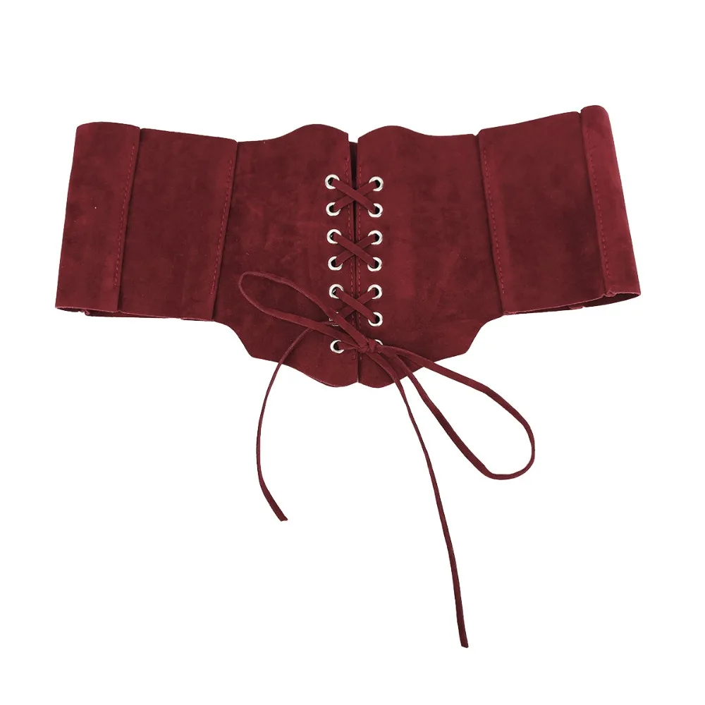 Gorset modelujący talię, regulowany, ze skóry PU, w stylu spicy girl, jednolity kolor brązowy, szeroki pas elastyczny, zamszowy pasek dla dziewczyn.