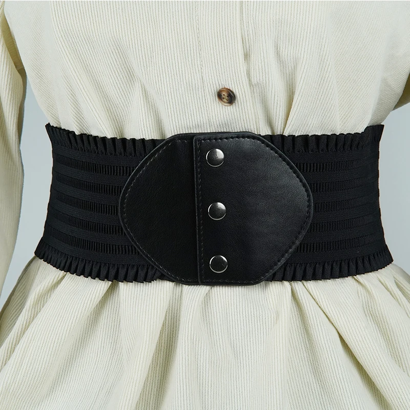 Elastyczny pasek damski o wysokiej elastyczności, elastyczny pasek PU w stylu bohemy, elastyczny pasek damski do tali, elastyczny szeroki pasek do jeansów i sukienek.