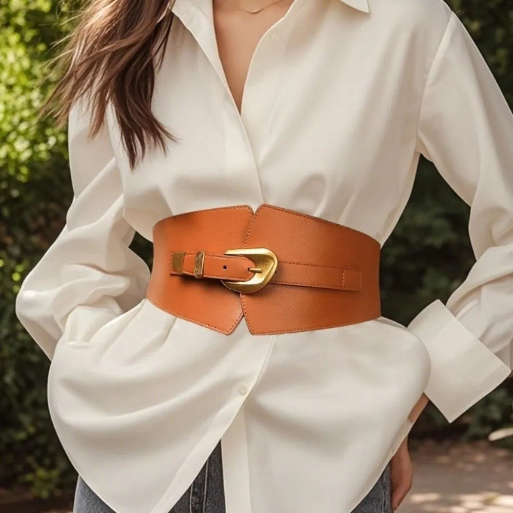 Modny pas z PU skóry, gorsetowy, zapinany na guziki, w stylu spicy girl, szeroki pas wyszczuplający talię, szeroki pasek damski.