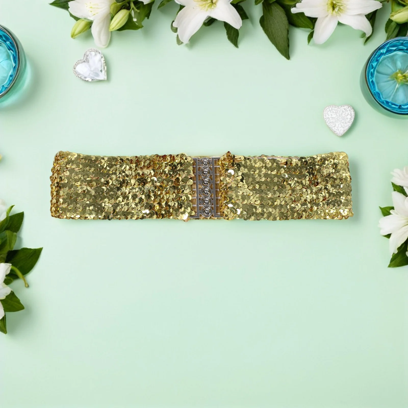 3 szt. Brokatowy pasek z cekinami dla kobiet, szeroki elastyczny pas, kostium na imprezę w stylu lat 80., rozciągliwy pasek do talii, błyszczący pasek cheerleaderki