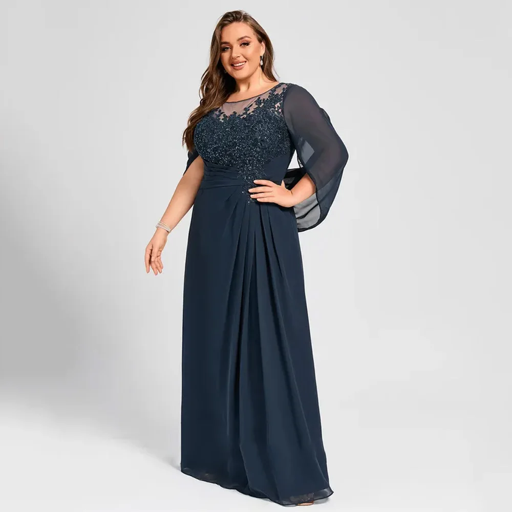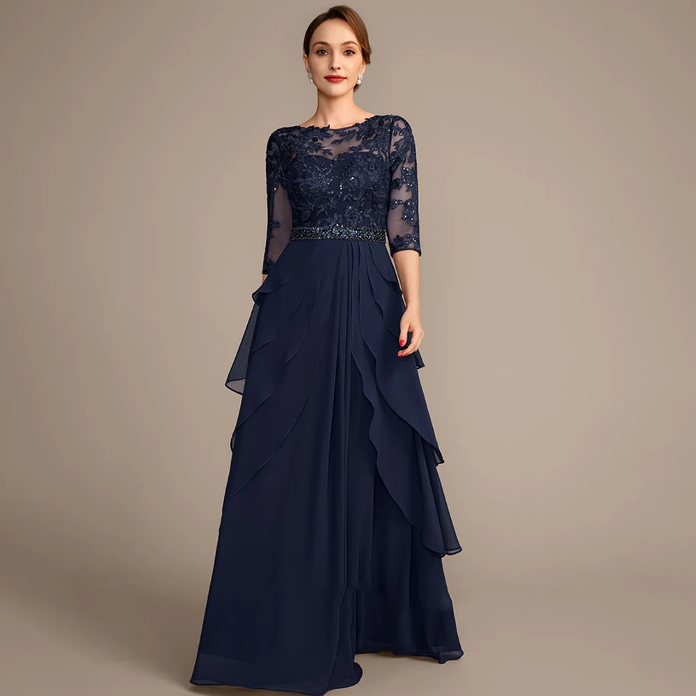 Granatowe sukienki dla matki panny młodej z rękawem 3/4, sukienki na przyjęcie weselne dla kobiet, nowość na lato 2026, szyfonowa suknia plażowa, suknia wieczorowa SEM008