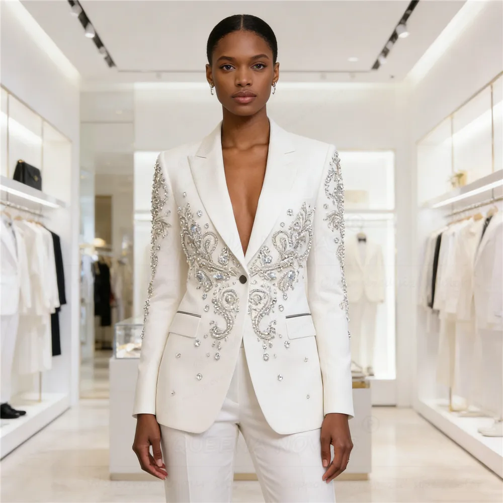 Luksusowe damskie garnitury spodniowe 2-częściowe plus size, zdobione koralikami i kryształami, marynarki na zamówienie, strój formalny dla gościa weselnego, na wieczorne przyjęcie.