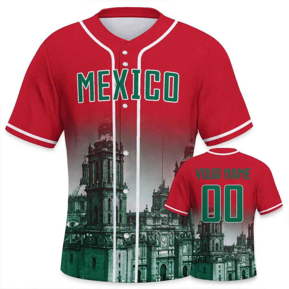 Męska koszulka baseballowa z Meksyku z własnym nadrukiem imienia i numeru, wygodna koszulka z widokiem na nocne miasto, idealna na prezent dla fanów baseballu.