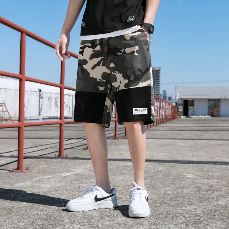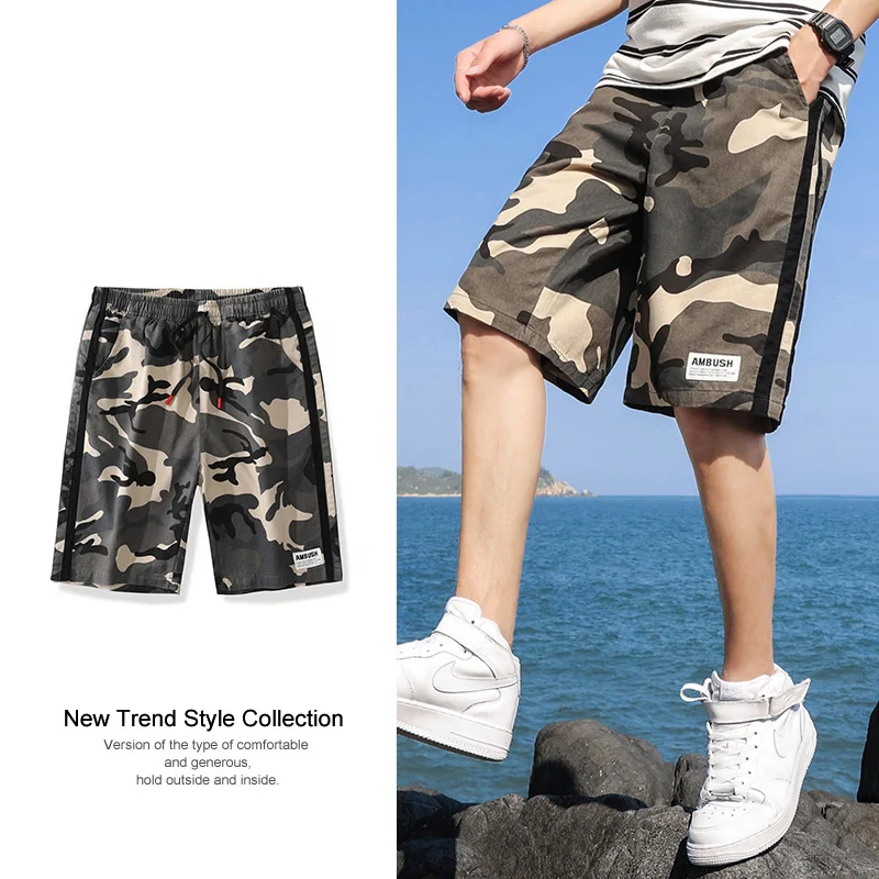 Męskie modne, lekkie i oddychające szorty kamuflażowe, luźne, oddychające spodenki sportowe do baseballu i aktywności na świeżym powietrzu, długość do kolan.