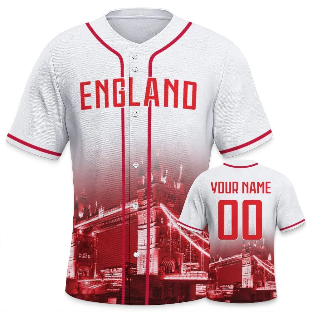 Męska koszulka baseballowa Anglia z własnym nadrukiem, personalizowana nazwa i numer, wygodna koszulka z widokiem na nocne miasto, prezent dla fanów baseballu.