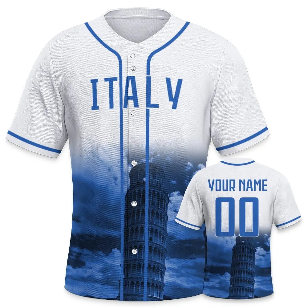 Męska koszulka baseballowa z Włoch z własnym nadrukiem imienia i numeru, wygodna koszulka z widokiem na nocne miasto, idealna na prezent dla fanów baseballu.