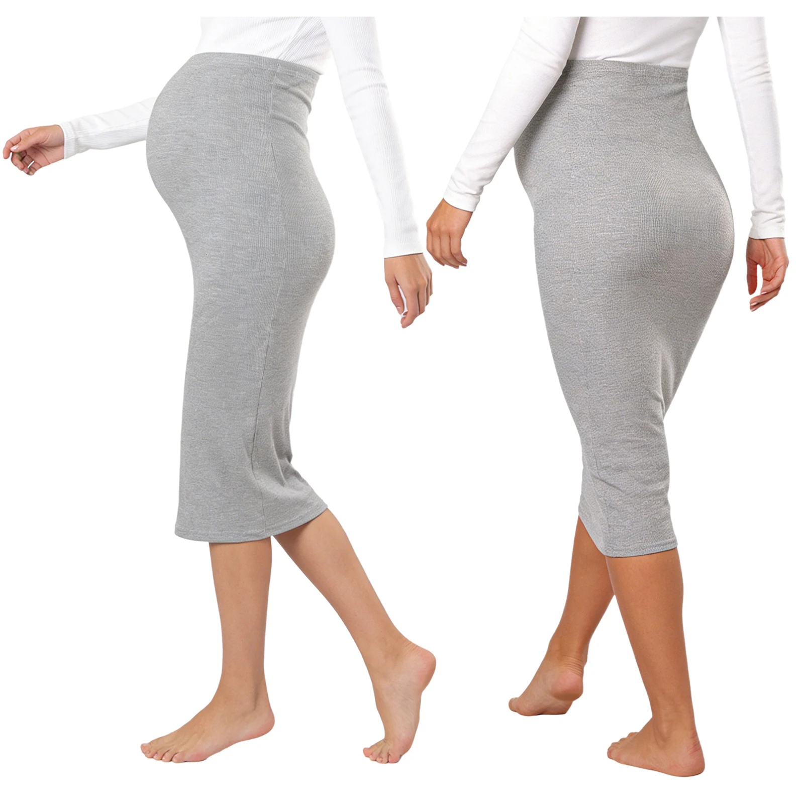 Ciążowa elastyczna spódnica midi z prążkowanej tkaniny, z elastyczną talią, codzienna spódnica ołówkowa do noszenia na co dzień, na zakupy, wakacje, do biura, do pracy, do noszenia w domu.
