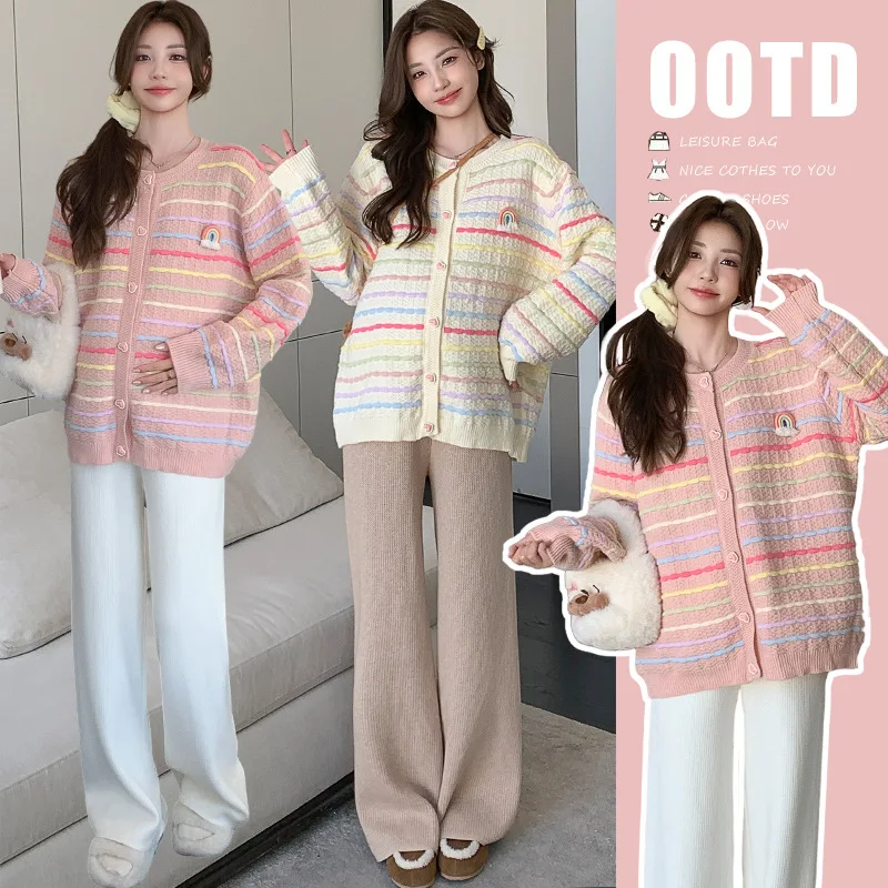 Moda ciążowa jesień-zima 2025, swetry do karmienia z dekoltem w serek, dopasowane, rozkloszowane, zapinane na guziki z przodu, dzianinowe bluzki/topy do karmienia piersią, odzież ciążowa.