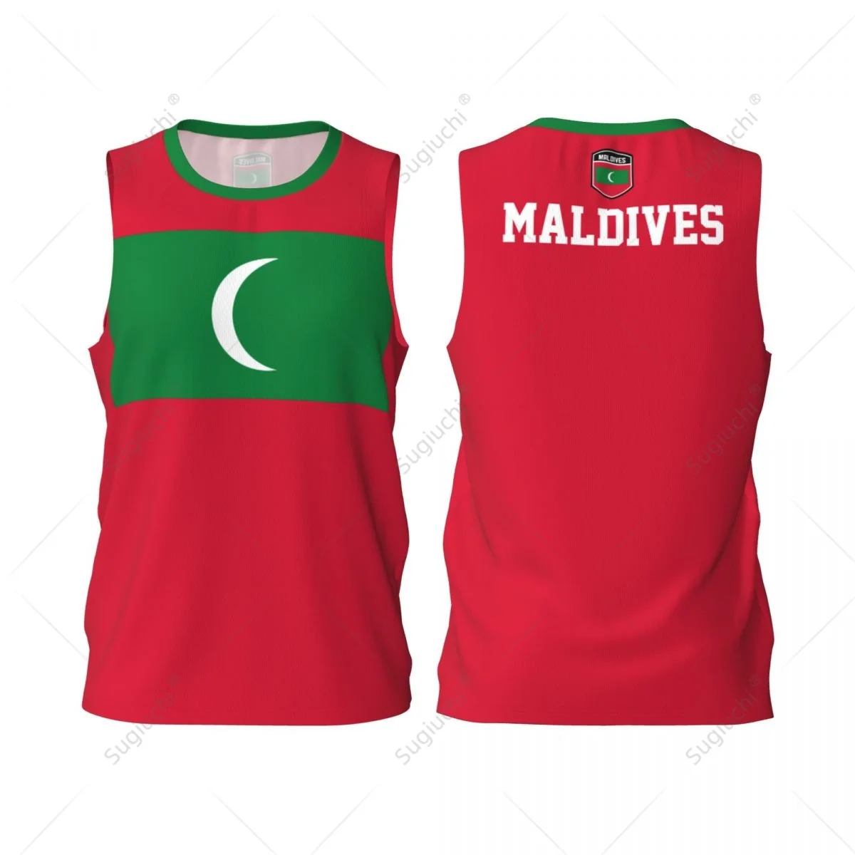 Koszulka bez rękawów z flagą Malediwów dla mężczyzn, do koszykówki, sportu, biegania, fitnessu, wielofunkcyjna, ekskluzywna, z możliwością personalizacji imienia i numeru.