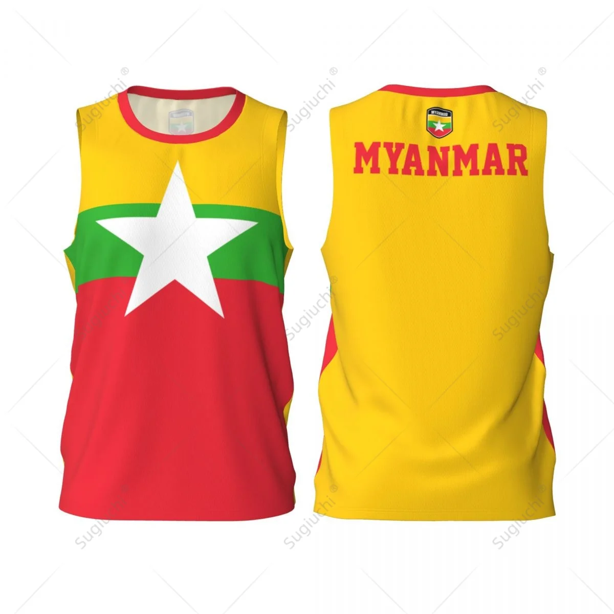 Męska koszulka bez rękawów z flagą Mjanmy, do koszykówki, biegania, fitnessu, wielofunkcyjna, ekskluzywna, z możliwością personalizacji imienia i numeru.