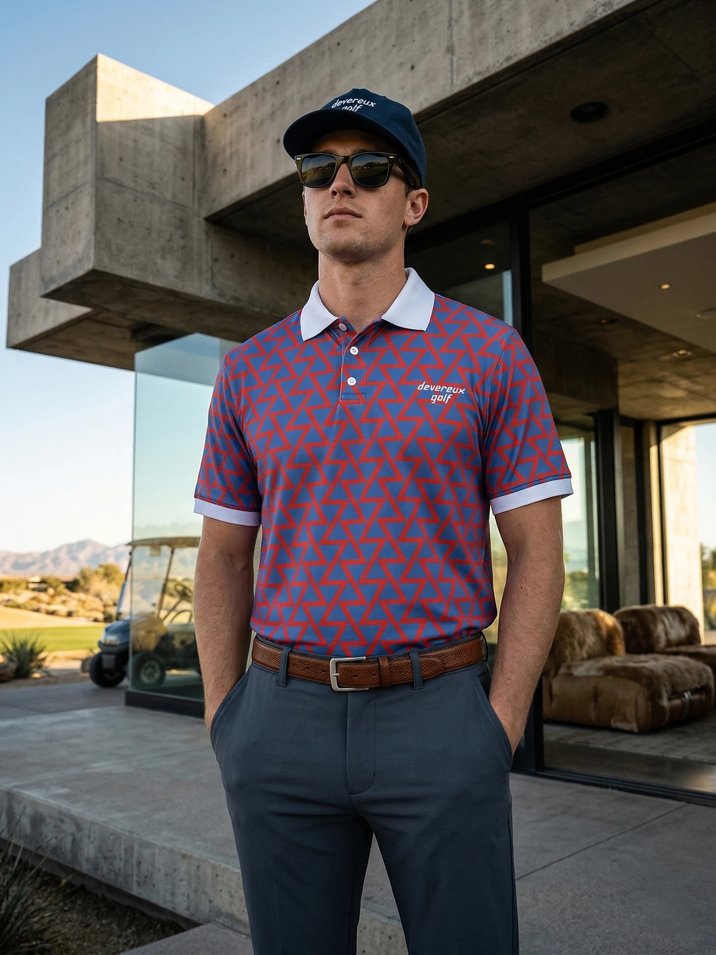 Koszulka golfowa Devereux męska z krótkim rękawem, letnia odzież sportowa, retro amerykańska, geometryczna, z blokami kolorów, koszulka golfowa z kołnierzykiem.