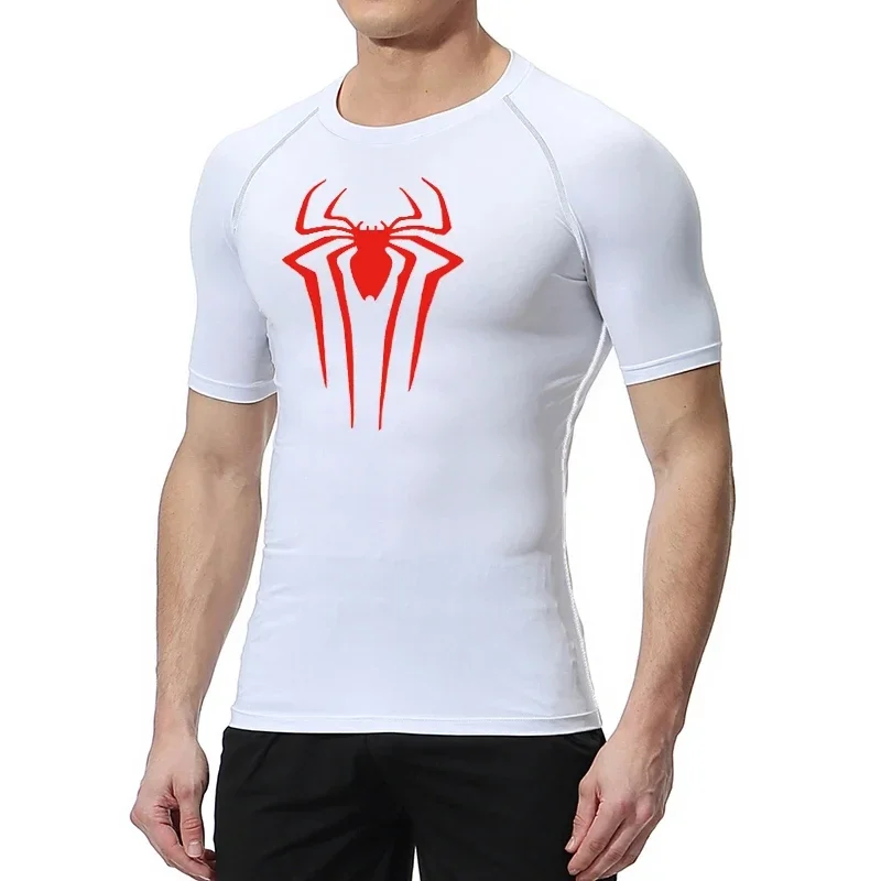 Koszulki kompresyjne z nadrukiem pająka dla mężczyzn, letnie koszulki z krótkim rękawem, rash guard, koszulki do ćwiczeń na siłowni, sportowe, szybkoschnące podkoszulki, topy